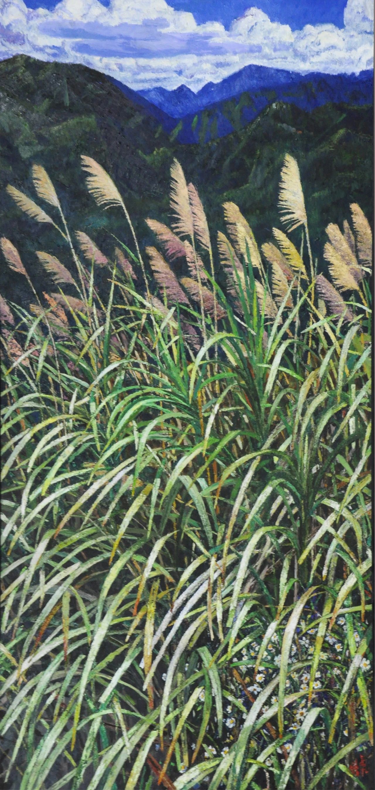 绘画重心也在退休后从主题性人物创作转移到了风景油画,“既然要画风景,我希望能够找到自己的油画语言,和别人拉开距离,既要呈现油画的技巧,又要有油画的内涵。”在他的风景作品中,常常把司空见惯之景与物加以组合、提炼,从中发掘出大美,从山川、溪流、树林,一直到木头、石头、牛群等等,都得到了他孜孜不倦的开掘。“我画风景,不画名山大川,不画高山大海,不曾去过,不曾看过的风景,我也不画,我就画我最熟悉的事物。”他说道。譬如此次展出的作品《寻常的风景》,这张画就取材于邵增虎画室旁边路上的一个景致。那里一路上都是莽草,一年四季有各种各样的变化,那些莽草刚刚开花初放的时候是紫红色的,然后变黄,到最后的阶段变成黄白色,这个过程中的色彩的变化很好看。枝叶互相穿插,随风飘荡。互相切割着有限的空间,让人感觉到无限变化。