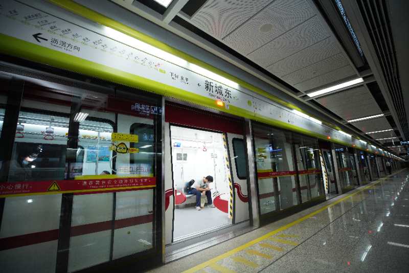 当晚,记者坐上了这辆首发列车亲自体验。21时06分,列车准时从广东广佛轨道交通有限公司驶出,空车来到新城东地铁站后,正式开门“迎客”。