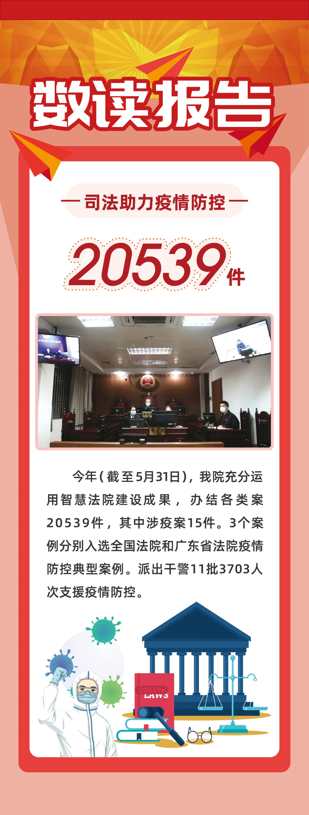 截至5月31日,今年共办结各类案20539件,其中涉疫案15件。