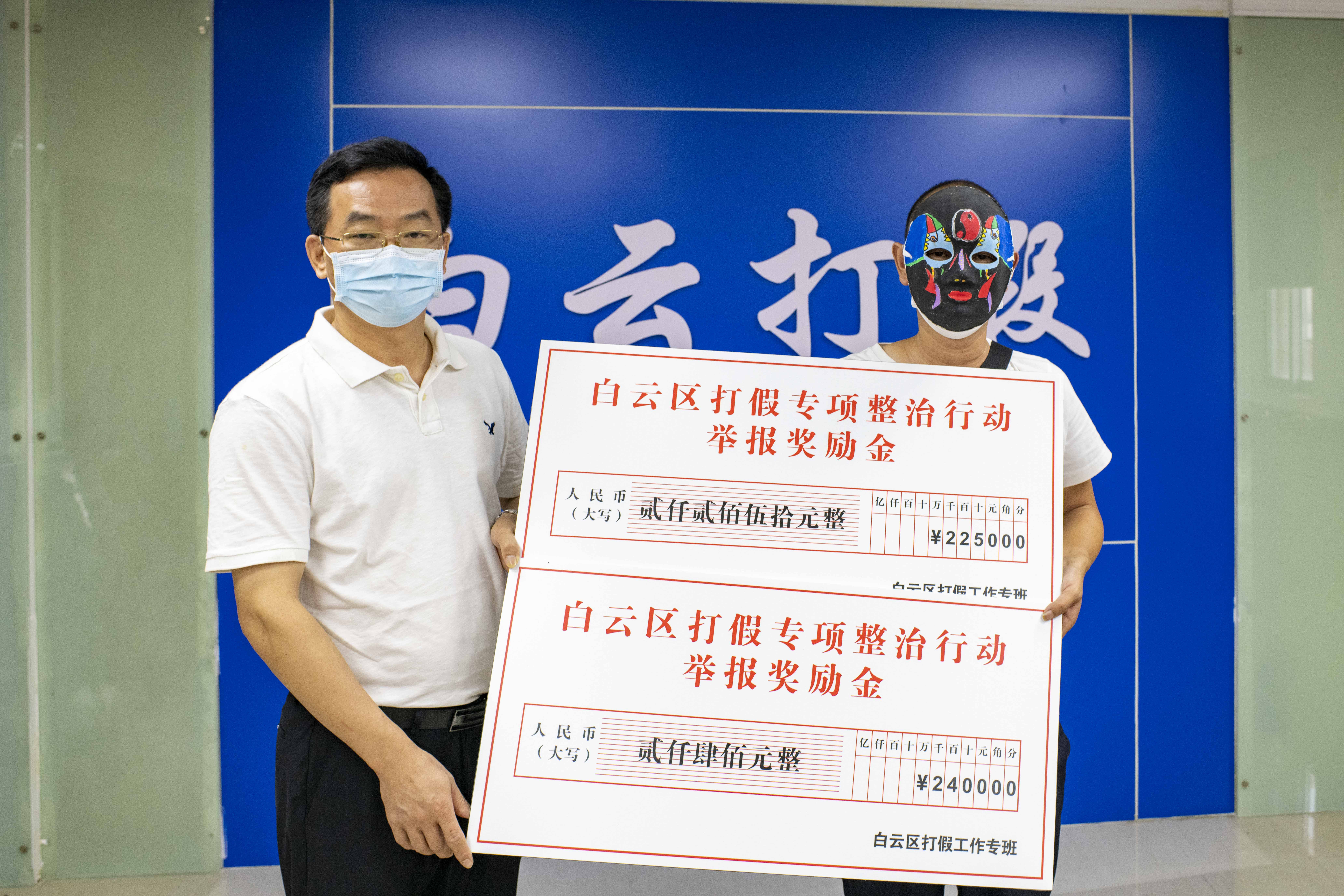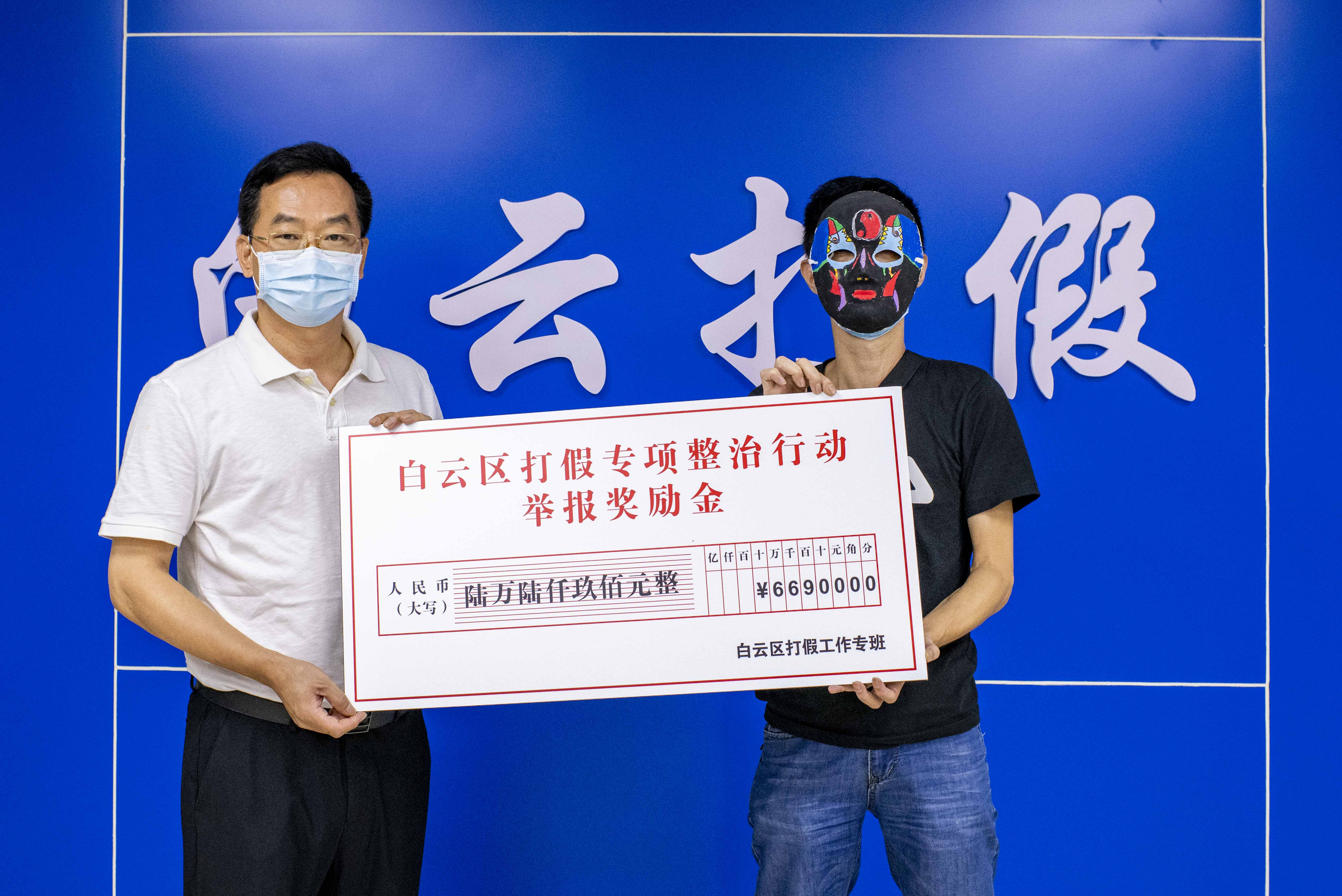 打击制假售假营造良好的营商环境,维护消费者和企业合法权益,需要群众共同参与。去年9月,白云区出台了《白云区举报制售假冒伪劣商品违法行为奖励办法》(以下简称“《办法》”),举报人有特别重大贡献的,奖励金额可以超过50万元,上不封顶。据统计,2019年,白云区各级部门奖励举报涉假线索的奖金达200多万元。