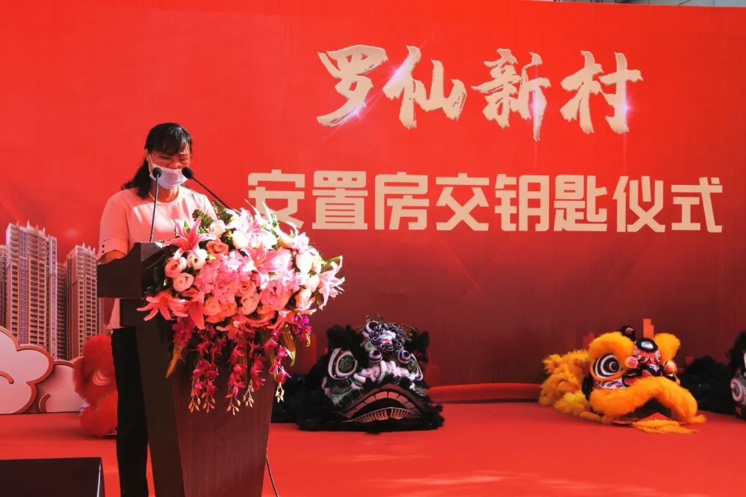 罗仙村党支部书记卢丽英表示,今天是大喜日子,各位父老乡亲期盼已久的罗仙新村安置房终于交钥匙了。罗仙新村的建设凝聚了区委区政府、中轴线安置房工程建设指挥部、花城街及区各相关部门和所有施工建设者们的心血,中轴线的建设给罗仙村带来翻天覆地的变化,期待未来中轴线不断发展,让村民们生活越来越好。