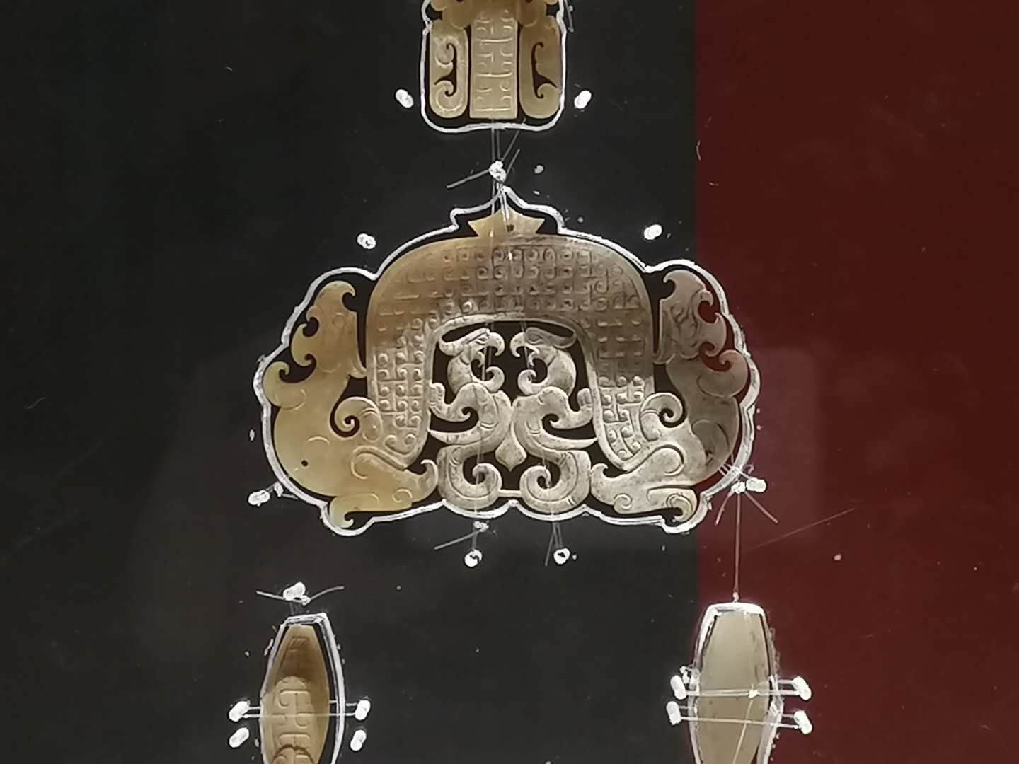 就拿玉器来说,先秦时期,组玉佩是人们最重视的佩饰,其长度是贵族地位尊卑的象征,身份越高,组玉佩越长,行走时步子也越小,时人认为只有这样才能显示出贵族的风度。到了汉代,已不讲求大贵族必须小步慢行的周礼,因此虽然山东许多大墓中玉器也出土不少,但组玉佩并不多,然而南越王墓在这方面颇具战国余风,出土了不少精致的组玉佩。又如济南双乳山M1号墓墓主人面部盖有玉片制成的玉覆面,枕虎首玉枕,对比南越王赵眜的丝缕玉衣,就能知晓汉代丧葬习俗的很多重要细节。