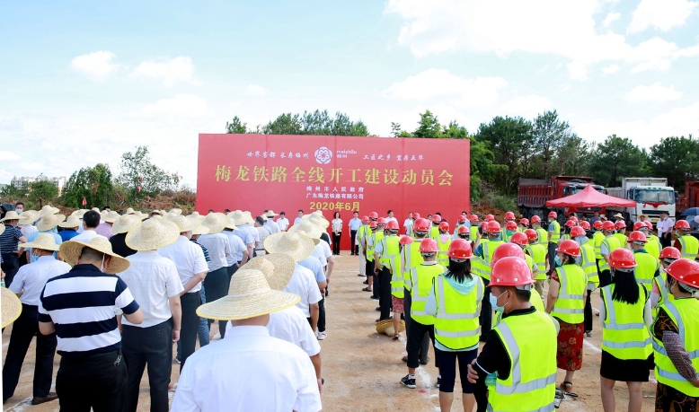 6月30日上午,广东省梅龙高铁项目(梅州至龙川)在梅州市五华县举行全线开工动员大会。该项目是首个由广东省自行投资建设和审批的时速350公里高铁项目,中铁一局广州分公司承建第五标段施工。
