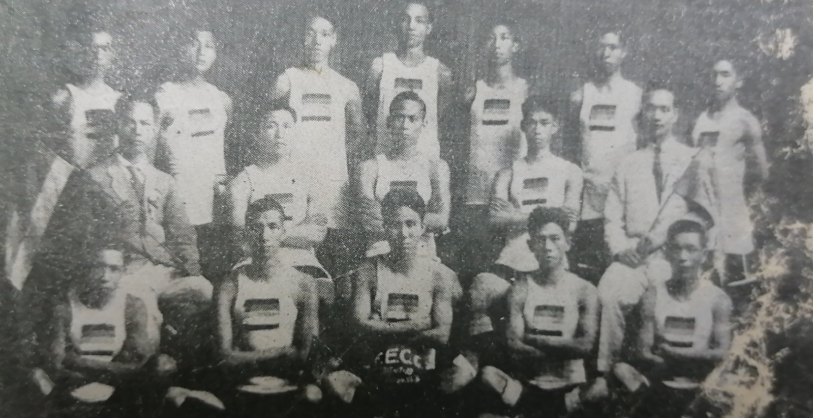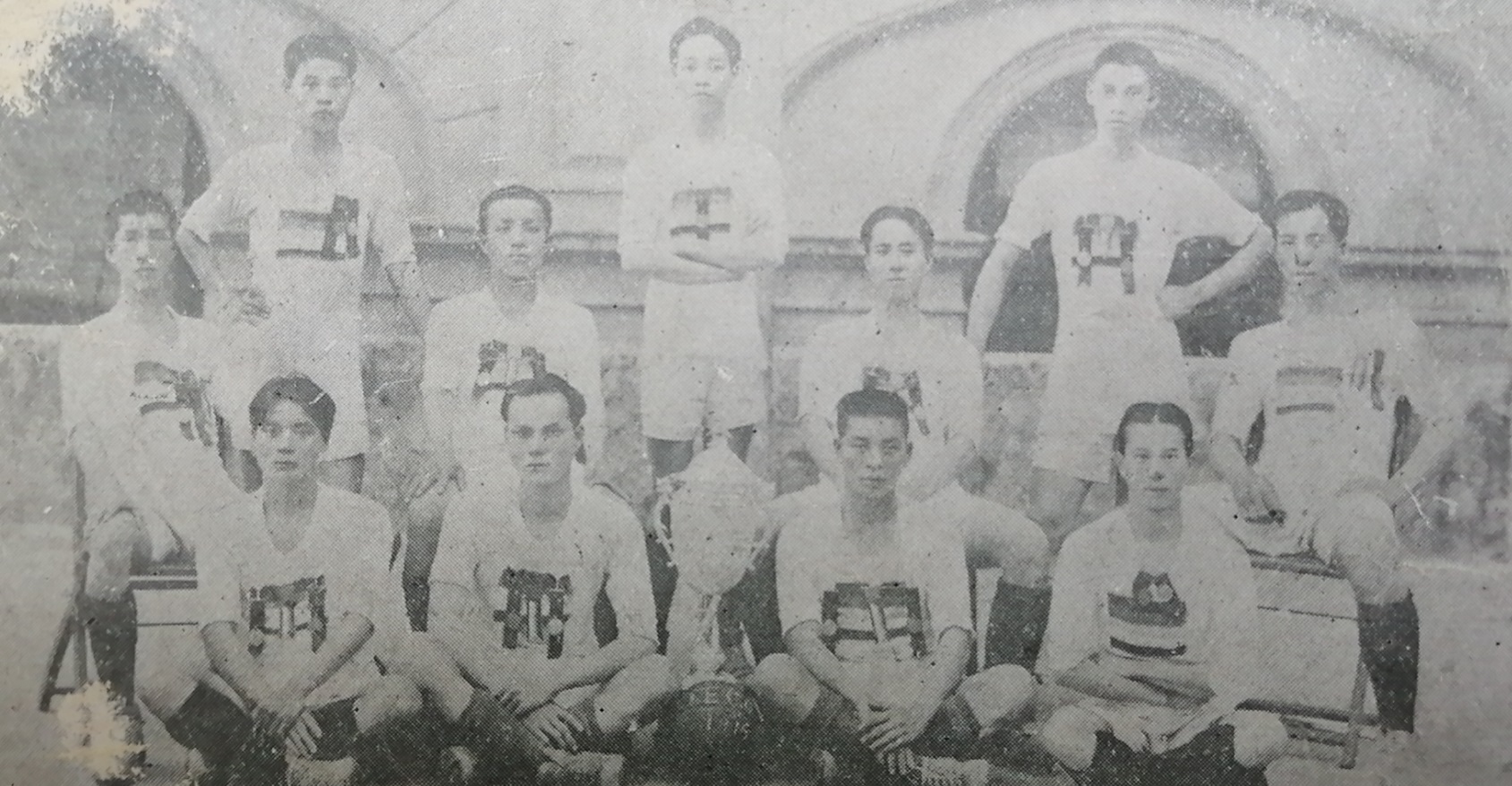 1936年首次参加奥运会的中国足球队,李惠堂(前排中)担任队长