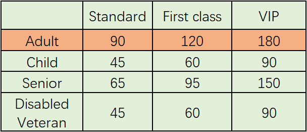 Table-3 One-way ticket price of the ferry service (person/yuan)