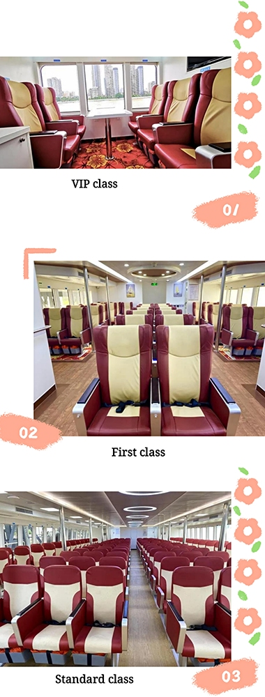Seats are divided into three classes: standard, first class and VIP with different pricing. [Photos originally from the Guangdong Province Navigation Group]