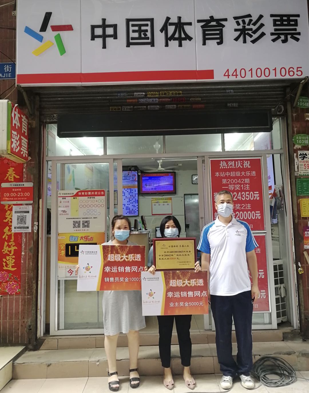 近日,广州市体育彩票管理中心马不停蹄,接连为今年以来中得“超级大乐透”头奖的实体店颁发“幸运销售网点”牌匾和奖励金。