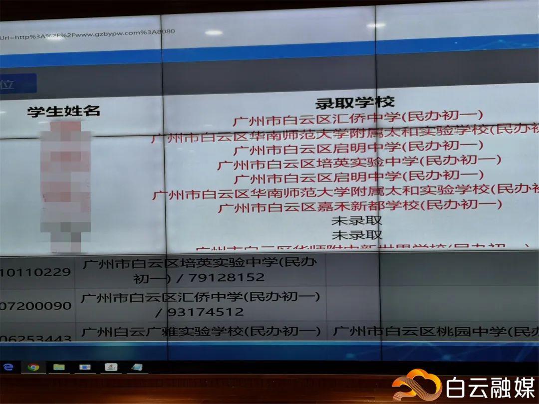 白云区首次民办初中电脑摇号仪式 在白云区教育局举行 参与摇号学生高达17179人 最终中签人数4974人 你家孩子摇中了吗? 据悉,今年对报名人数超过招生计划的民办义务教育学校,其招生计划通过电脑派位方式随机录取。 所以 今天的民办初中摇号仪式 也是白云区的首次 ▲ 摇号过程在公证员的监督下进行 摇号程序共设计了七个环节,分别是导入数据、检验数据、电脑摇号、导出数据、打印结果、签名确认、公布结果。每一个环节都透明公开,监督代表全程参与,甚至一些关键环节由家长代表亲自操作。 ▲ 2020年民办初中电脑摇号仪式 今天,参与摇号的民办学校有17所,参与摇号学生高达17179人,最终中签人数为4974人。 ▲ 摇号过程 其中,培英实验学校的99个学位也参加了本次摇号,其中面向白云区的学位有78个,区外20个,报名该校的学生近2700人。 培英实验学校校长邓东: 家长代表杜女士: 摇号结果这样查 ↓↓↓ 结果查询 1、登录白云区人民政府网站查询。 2、关注“广州白云教育”微信公众号推文。 提醒:摇号中签的学生须于7月9日-10日,在民办初中报名系统上进行录取确认,7月11日民办初中新生注册。