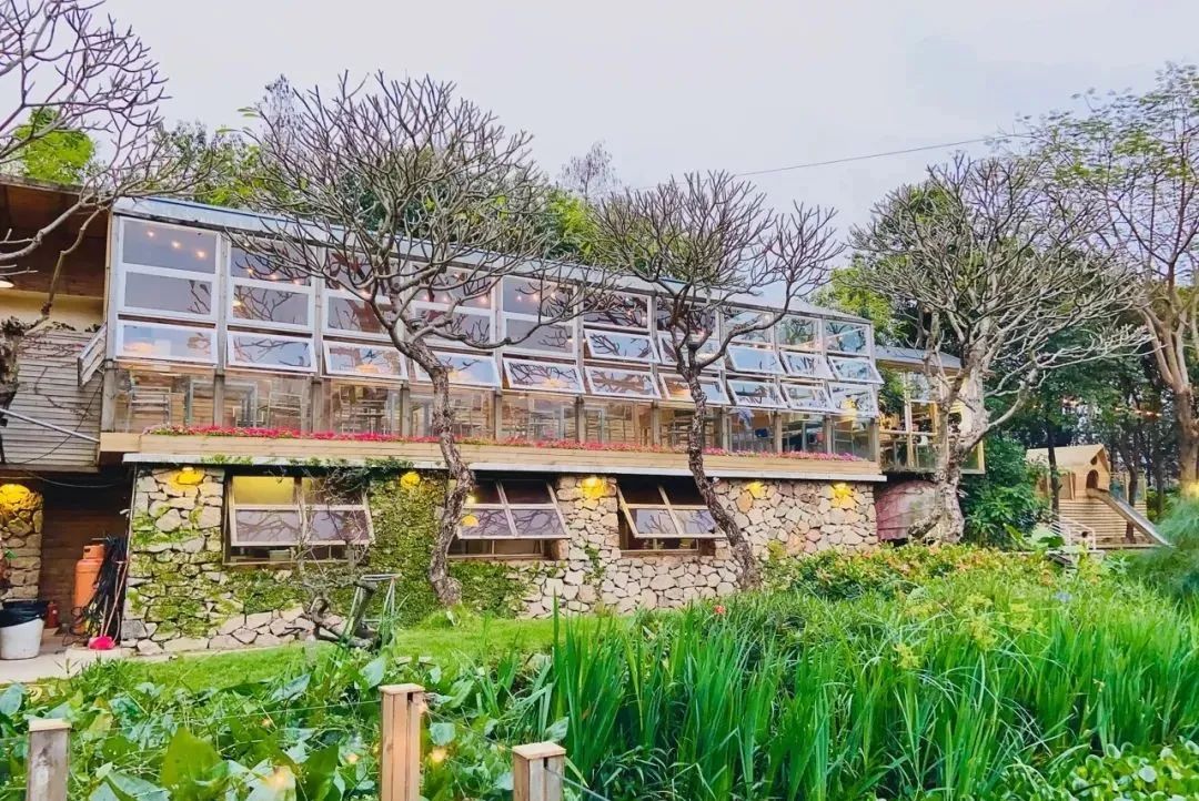 With vast grasslands, green trees, and a beautiful pond, the western-style restaurant is a perfect place to get close with nature and enjoy a natural breeze. It boasts a stone house and a glasshouse for dining areas, and a triangular log cabin for outdoor wedding ceremonies.