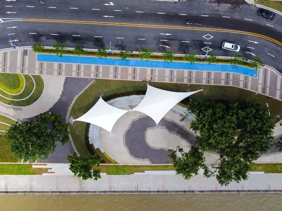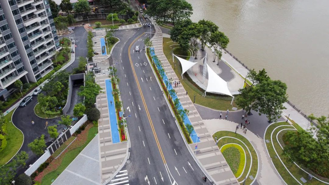 与改造前相比,升级后的绿道在原基础上增加了灯光照明、健身器械等便民设施,并配套有室外篮球场、健身广场、林荫大道、休闲休息区等公共场所,结合得天独厚的江景资源,为市民提供了一个集观赏、休闲、娱乐、健身于一体的公共区域。