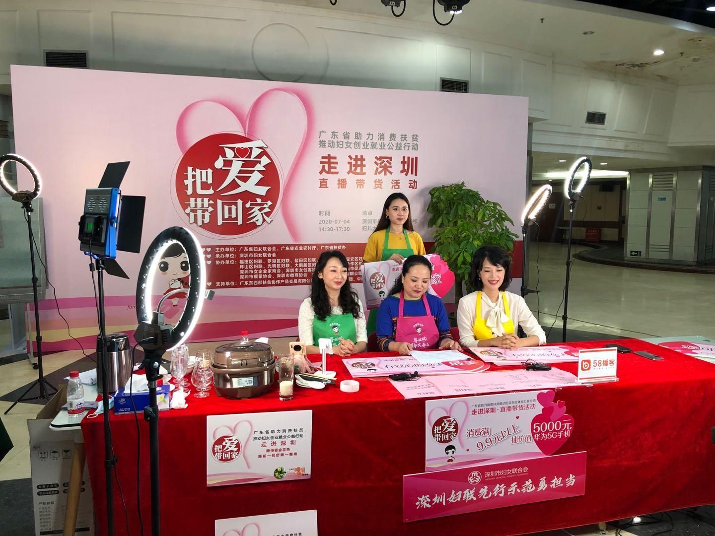 “真的太划算了!大家赶快买买买!”7月4日下午,妇儿大厦四楼“化身”直播间一场充满爱心的直播活动在这里举行。这是为响应广东省妇联发起的“把爱带回家”公益系列活动,深圳市妇联举办了深圳场直播带货活动,为观众们带来有深圳特色的产品,据数据显示,此次直播成交额达160万元,观看人数超318万。