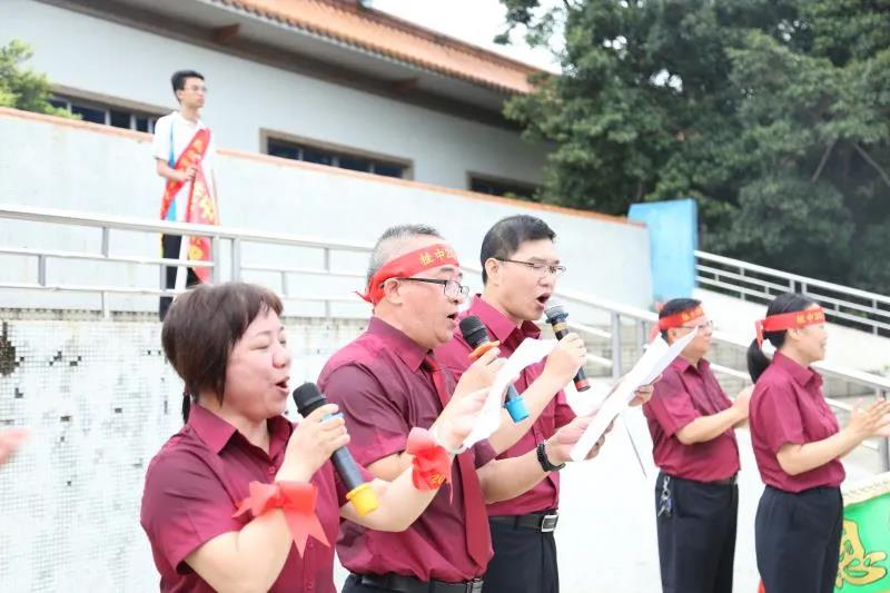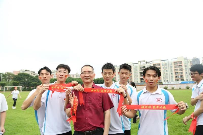在顺德容桂的桂洲中学,在临考前一日举办了“壮行仪式”。现场,该校校长刘中良携手艺术科组老师齐唱《真心英雄》,为学子们助威。另外,师生们头戴助力头巾,意气风发。