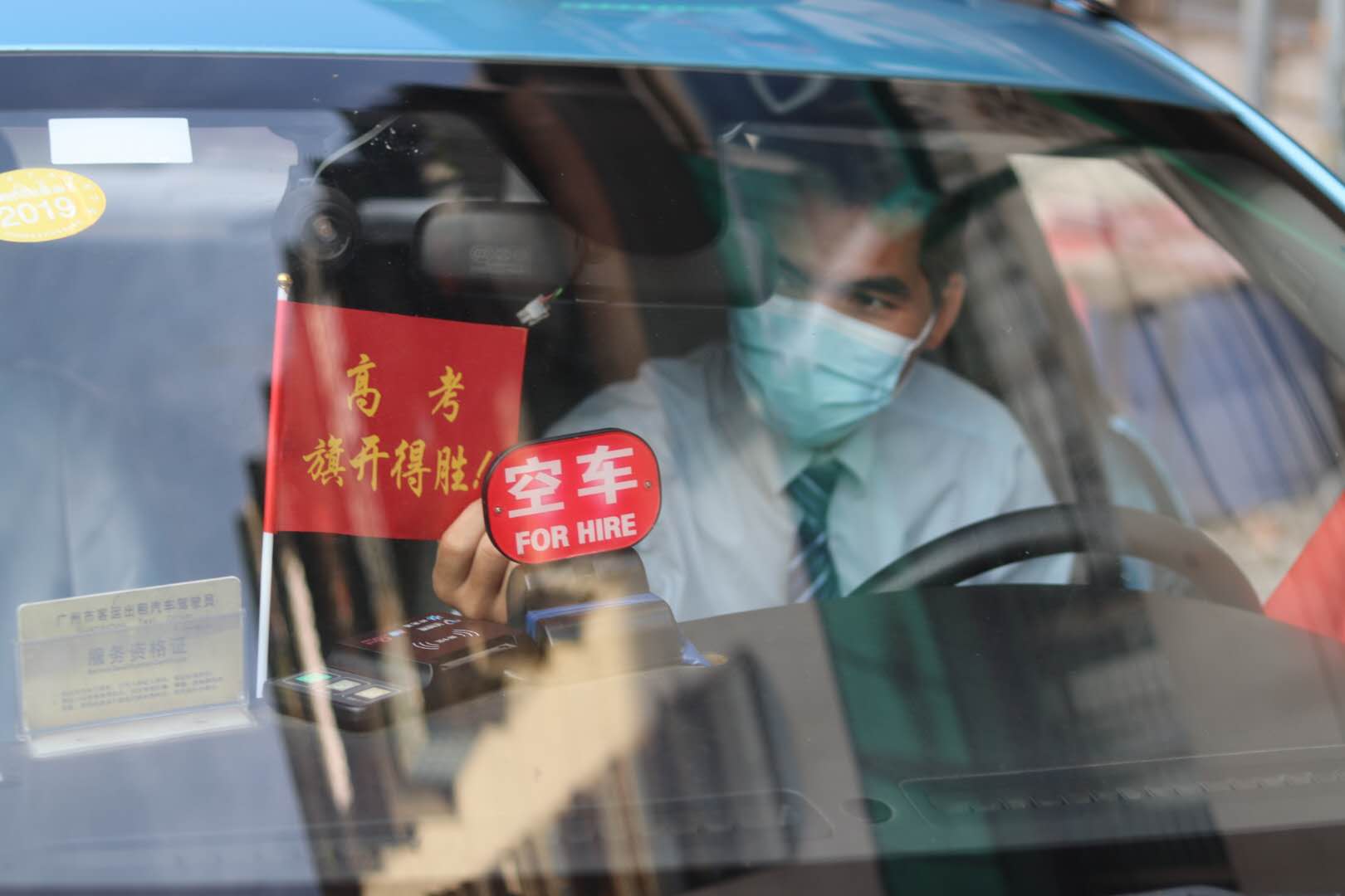 广州公交集团白云(广交)公司在党员示范出租车队预约爱心送考的基础上,携手广州交警,开启“警企联动”爱心护航,发动辖下八千辆出租车,加入到送考当天的应急护航队伍当中。