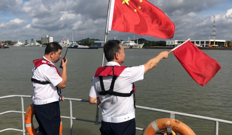 7月6日早晨,番禺海事处联合内港海事处派出三艘海巡船提前进入封航警戒水域,协调无关船舶及时撤离封航管制区域,现场指挥为封航锚泊船选择合适锚地,维持锚泊秩序,并通过甚高频VHF播报航行通告,减少交通管制期间突发状况的发生。