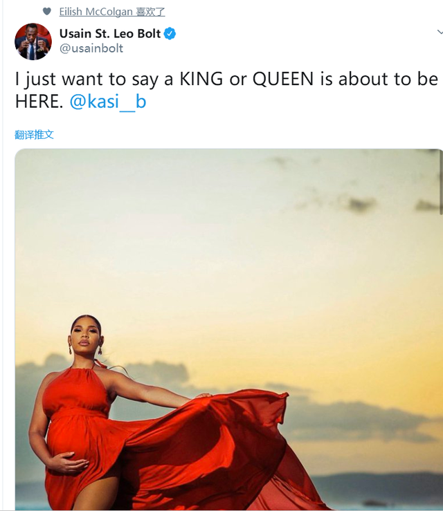 今年初,博尔特官宣女友怀孕的消息,他还在好奇地猜测究竟是“KING”(国王)还是“QUEEN”(王后)。