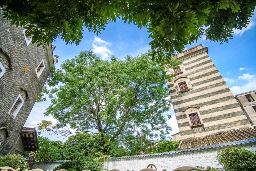 在湛蓝的天空下,一座座清末民初时期筑建的碉楼错落有致地矗立在村庄中,这是记者在洛场村花山小镇见到的一幕。2013年,花山小镇项目正式开发建设,依托村内的华侨碉楼与青砖房屋等传统建设,洛场村逐渐打造出一个集文化创艺、博物展览、美食娱乐、度假休闲于一体的文创旅游园区。