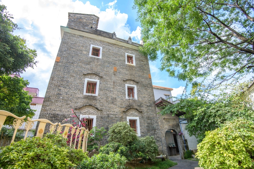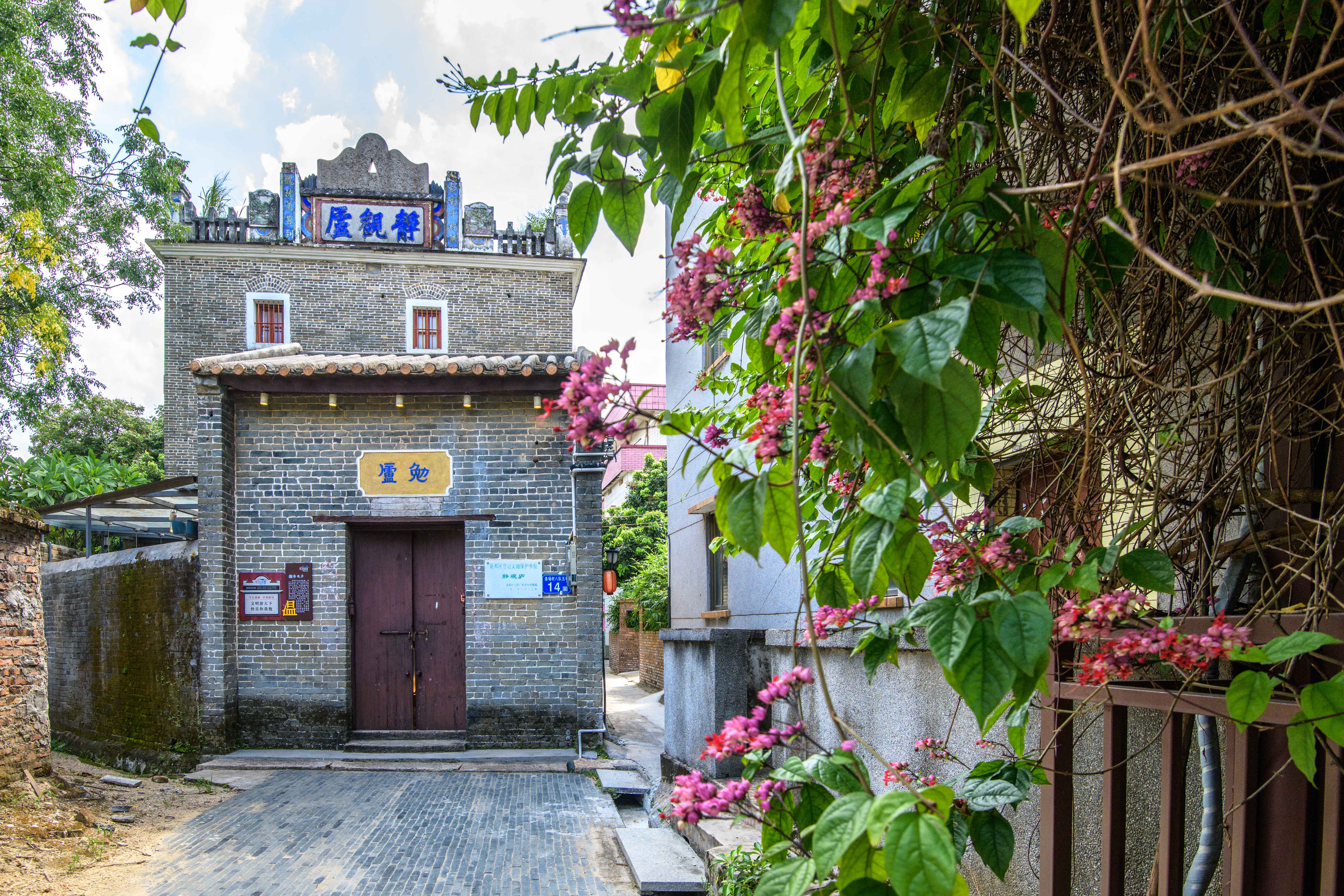 在花山镇东部的洛场村,每天都有飞机从青砖灰瓦的碉楼上空飞过,这里距离机场高速北出口仅2分钟车程。这座百年村落不仅是红色文化根据地,还是著名的侨乡,目前全村常住人口2572人,海外华侨有5000多人,是现居村民人数的两倍之多。