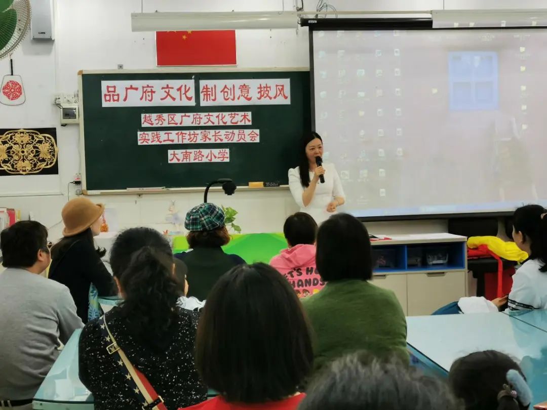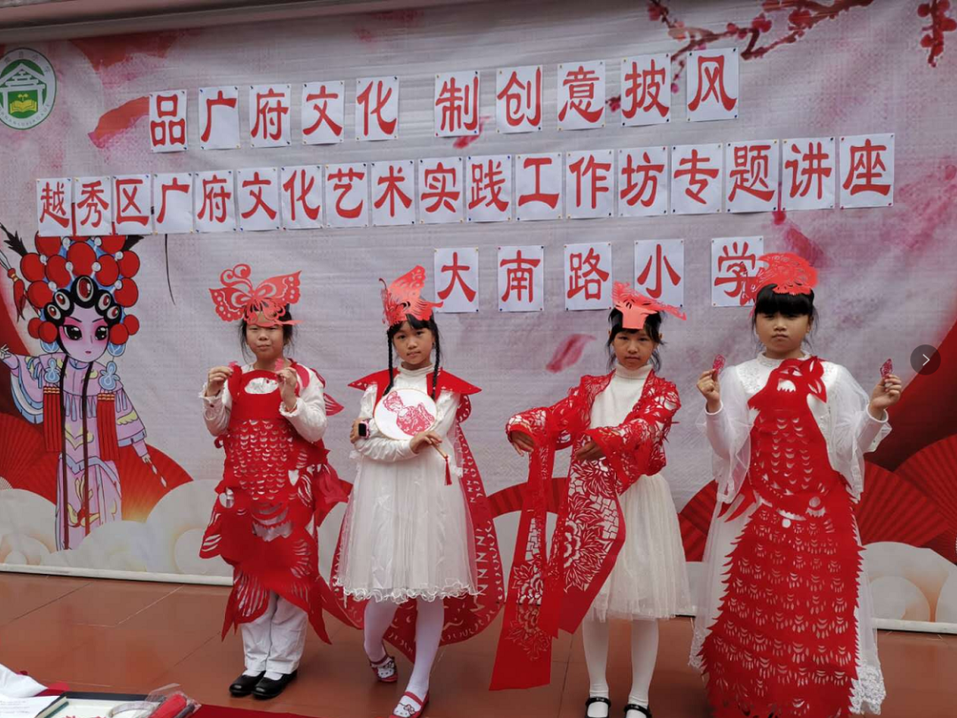 上学期,学校美术老师黎秀贞组织全校师生家长进行“品传统文化,制创意披风——越秀区大南路小学广府文化艺术实践工作坊”系列活动,召开家长动员会,组织全校学生进行披风制作系列讲座,指引孩子和家长了解披风的历史,剪纸的基本知识与要素以及披风款式、形式的制作。本校部分孩子们从一年级开始就已经参加过剪纸兴趣班,为这次披风制作奠定了基础。