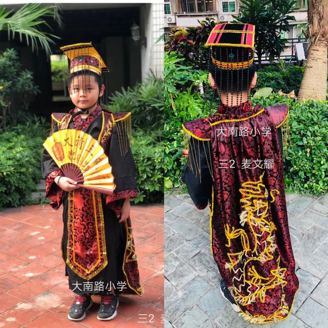 作为广东省首届中华优秀传统文化传承学校和广府文化传承基地,大南路小学每年寒假都会布置一项特别的亲子家庭作业 —— 广府文化DIY。从面谱、云肩,到袍服、头冠……