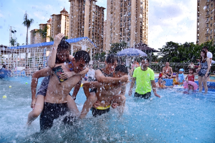 炎炎夏日,水上趣味运动还带动了健身热潮。参与的游客表示,通过运动,意识到平日要努力锻炼身体,塑造健美身材,提升生活质量。
