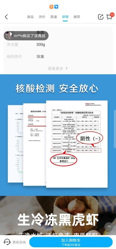 记者随即在京东app上搜索“厄瓜多尔白虾”,平台目前有售,京东回应表示,6月中旬开始,京东就已针对肉类、海产品类商品在全国生鲜仓进行分批次的核酸检测,全面做到应检尽检,至今已完成数百批次的产品检测,覆盖厄瓜多尔白虾,相关检测结果为100%阴性。