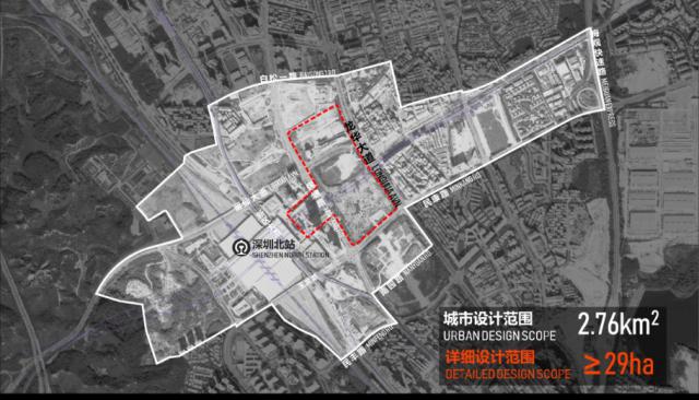 ▲北站枢纽地区城市设计国际咨询范围图。图片来源:深圳市规划和自然资源局