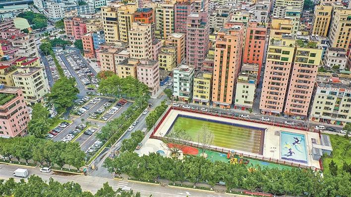 光明区李松蓢社区新村围合小区新建了社区公园、停车场等设施,环境越来越宜居。