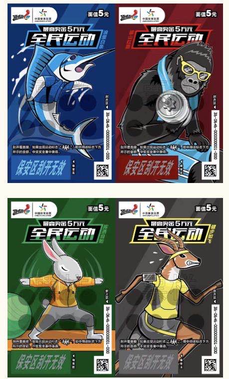 从2020年7月6日9:00:00~8月8日23:59:59,在体彩实体店购买任意面值的“一蹴而就”(5元、20元)系列即开型体育彩票或“全民运动”(5元)即开型体育彩票,并通过“中国体育彩票”微信小程序“点亮健康中国”活动页面,按提示扫描票面保安区二维码即可获得1次扫码抽奖机会。具体活动详情请到体彩实体店垂询!