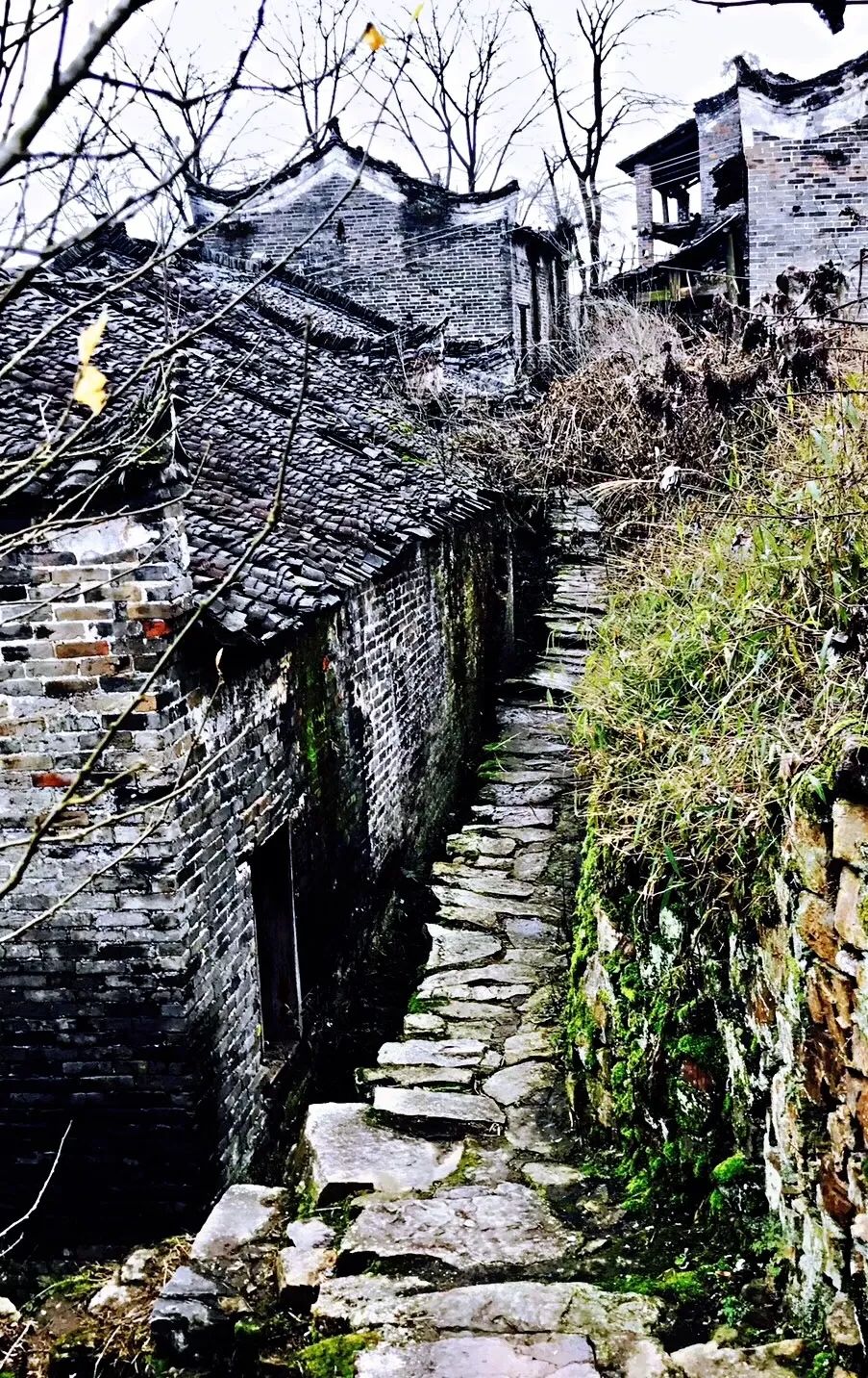 山寨的“美”花看不完,夕阳已西下,一座座青砖黛瓦房被罩上了一层橙红色的轻纱。此时,再回到那条主干道宽阔的青石板,一路往下,酒坊、豆腐坊、榨油坊,小摊贩和山货都不见了踪影,抽烟喝酒侃大山的老者也不见了,山寨变得静悄悄。