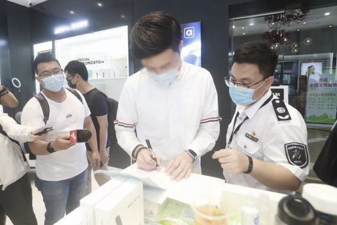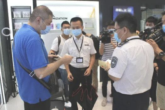 这宗案件是在今年5月31日第33个“世界无烟日”时查获的。当天,深圳市控烟办联合南山市场监管局等相关职能部门来到辖区的天利名城、海岸城片区开展专项控烟行动,对各商铺进行随机检查。检查发现,天利名城二楼某品牌电子烟门店内,个别工作人员和市民存在吸电子烟行为,且店内没有看到明显的禁烟标识,执法人员随即对该电子烟门店展开详细检查并固定证据,对店内吸烟人员当场处罚50元人民币并责令改正。