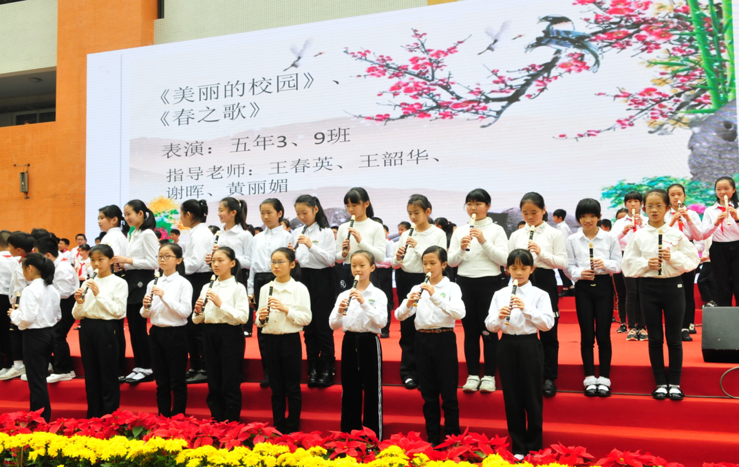 “艺术熏陶心灵。我们学校要求每个同学至少要掌握一门乐器,此外全校同学都要学习竖笛。竖笛比较容易上手、携带方便,可以独奏、也可以合奏。评价孩子们的音乐素养高,考个试、认识几分音符不一定有用,要拿起乐器就演奏,还可以和小朋友一起合奏,这是多美妙的事情啊!”陈武介绍道。龙口西小学是全国竖笛教学示范基地,自2016年推广以来,已成为了全校普及的艺术项目。