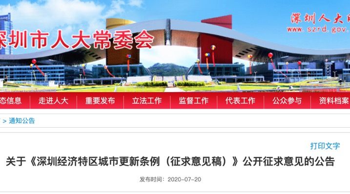 备受关注的深圳经济特区城市更新条例继上月底提请深圳市人大常委会会议首次审议后,7月20日,深圳市人大常委会在其官网公布了《深圳经济特区城市更新条例(征求意见稿)》(以下简称《征求意见稿》)全文,广泛征求社会各方意见。