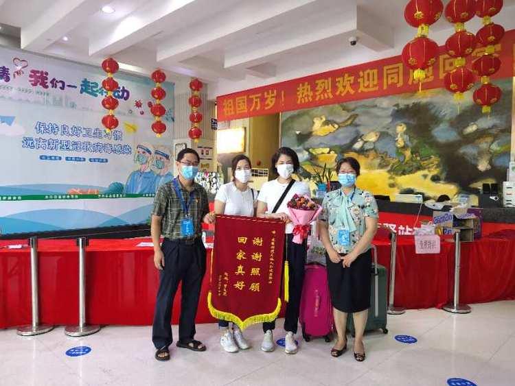 清晨,陽光鋪灑在龍崗街道天地人和健康驛站內,曾女士臉上洋溢着幸福的笑容,14天隔離期滿,終於能回家了。當日驛站值班領導、龍崗街道黨工委委員肖湘珍送別曾女士並為其送上了鮮花。離別之際,曾女士也向驛站贈送了一面「謝謝照顧,回家真好」的錦旗,並在留言牆上寫下了自己的祝福,隨即登上轉運車,與驛站工作人員揮手作別,踏上回福建老家的路程。