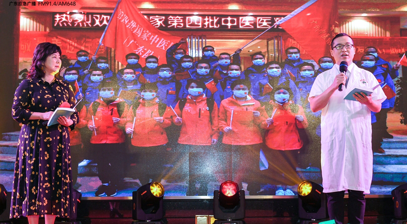 广东省人民医院协和一区护士杨清与广东省中医院重症医学科护士陈海振作为日记作者代表,与广东新闻广播主持人共同朗读驰援日记,再现战“疫”中的感动时刻,向广大医护工作者致敬!