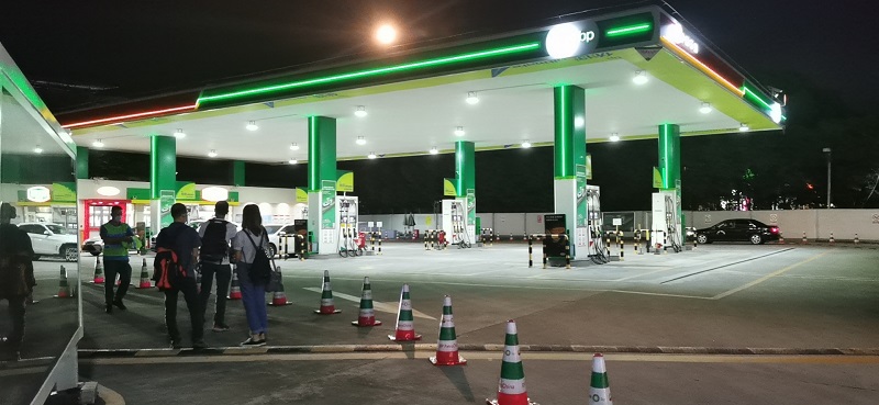 长兴路上的碧辟加油站夜间加油的车辆不多