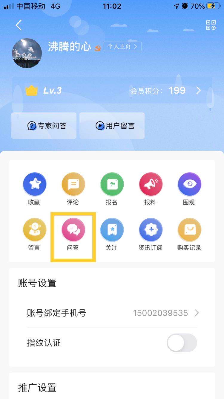 在首页点击右上角的个人头像,进入个人主页,点击【问答】可以查看学校对提问的回复。