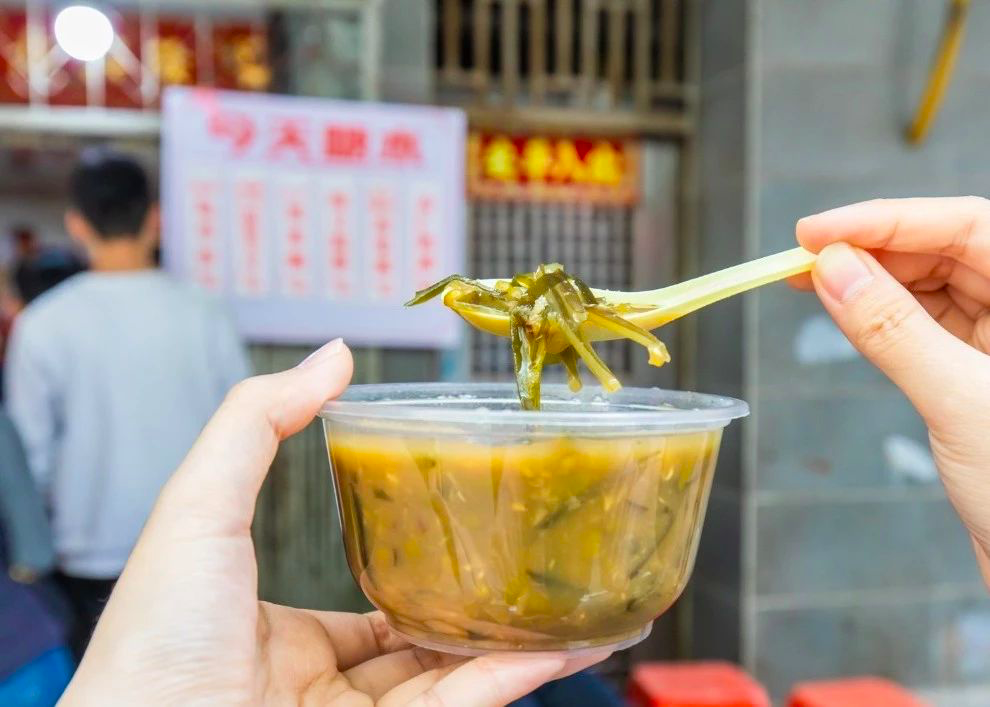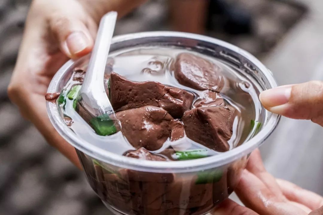 新鲜滚热辣的猪红汤,一碗小的只要2蚊,中碗分量如图,只要4蚊,这个性价比引得街坊们总是跑来打卡,即便没有地方坐也完全不介意。