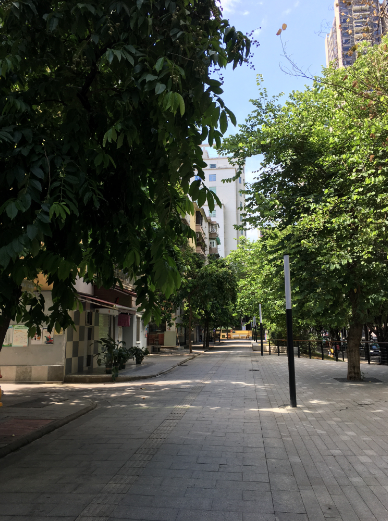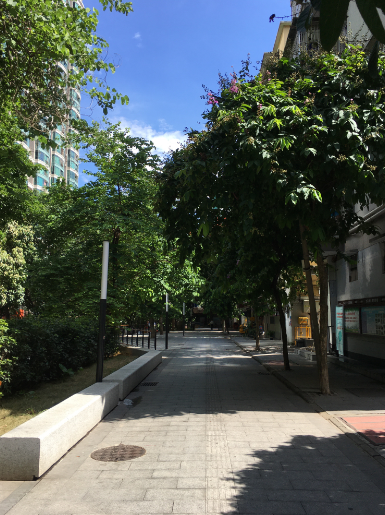 建设大马路西侧的拥翠小区,位于省应急管理厅和省委党校之间,都是九层以下的楼梯楼。和邮电小区不同的是,拥翠小区首层临街单位不少都用作商铺,有小巧精致的咖啡店、平民化的士多和发廊、还有养生馆等等,多样性为街区带来了活力。另外,小区近年刚进行过微改造,重新铺设地面,修建坡道,新种了花草绿植,装上了新路灯,环境焕然一新。