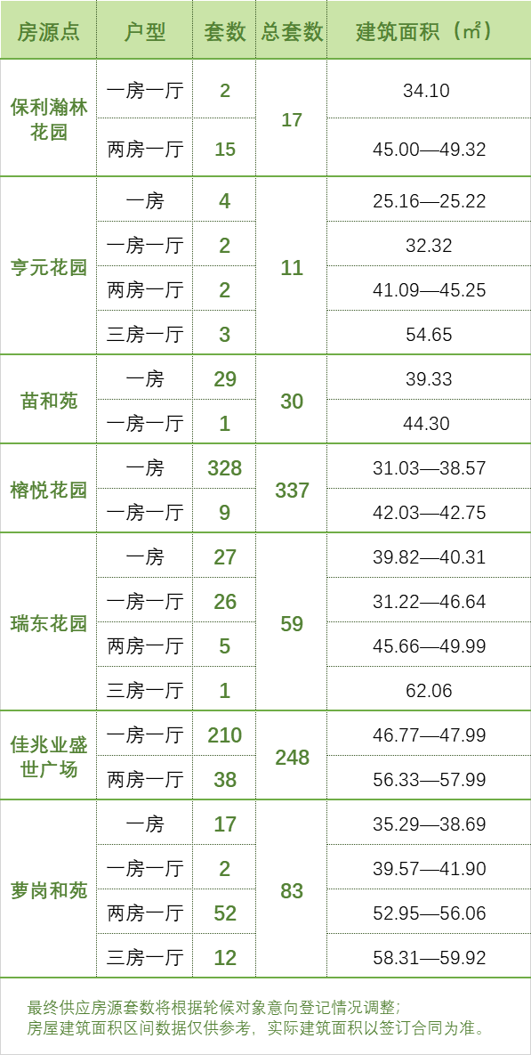 分配对象可在25个房源点中选择1~15个房源点进行意向登记。未获配租意向房源点配租资格且愿意服从分配的分配对象,参与剩余房源(剩余房源是指根据户型对应分配对象所选配租房源点进行分配后剩余的房源)摇号分配。