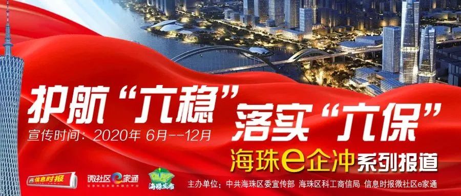 为此,信息时报微社区e家通将联合海珠区委宣传部、区科工商信局,结合中央关于“六稳”“六保”的决策部署,推出护航“六稳”落实“六保”——海珠e企冲系列报道,展现海珠企业的亮丽战绩。