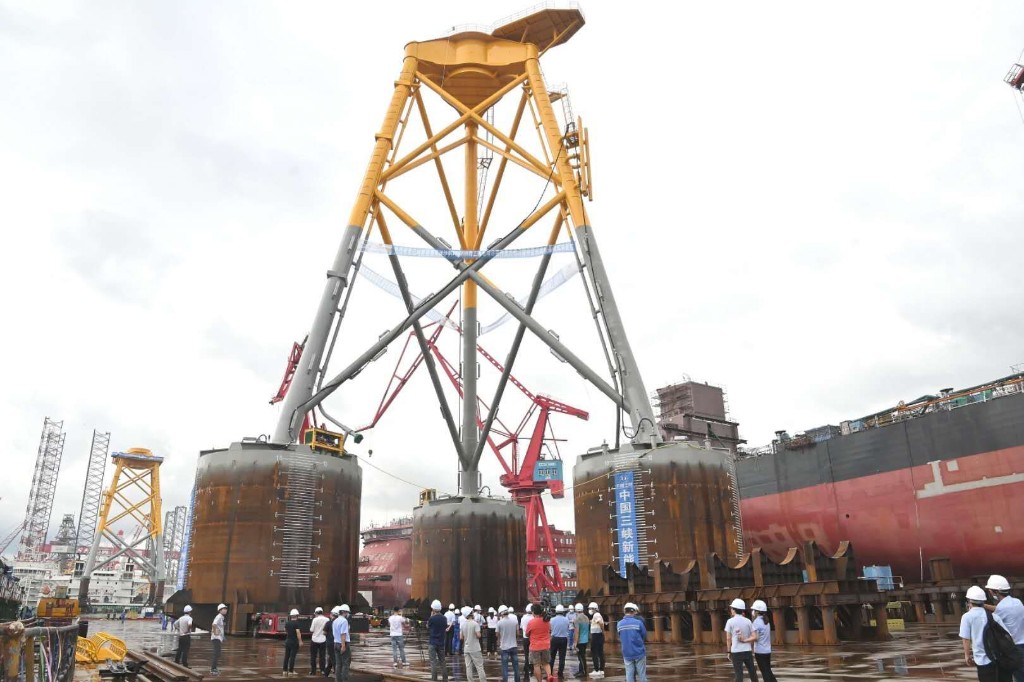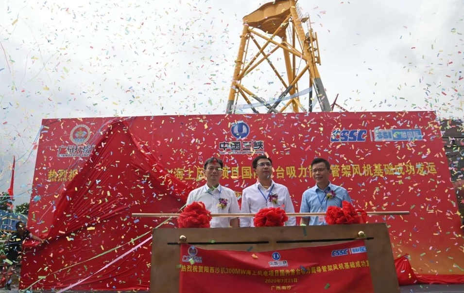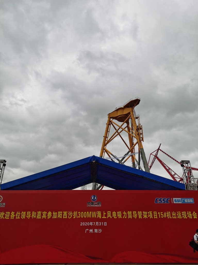 7月31日,由中国长江三峡集团公司广东分公司投资、交通运输部广州打捞局总承包、中国船舶集团广船国际有限公司建造的国内首台吸力筒导管架风机基础在广州南沙成功发运,并将在广东省阳江市阳西县沙扒湾海域300兆瓦海上风电项目中首次亮相,助力粤港澳大湾区建设,为广东省经济发展提供能源支撑。