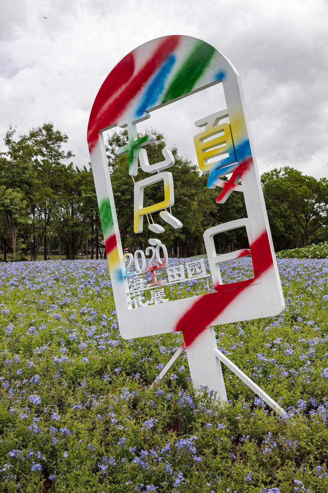 花雕艺术展区位于园区左侧,花卉种植面积约为2000平方米。以钢筋作为造型骨架,通过鲜花的堆砌与组合的形式,搭建绵羊、蜗牛等雕塑小品,增添了展区的趣味性。设计师将草地视作画布,运用不同颜色的花卉、定制的画框与画笔,赋予了展区活力与生机。