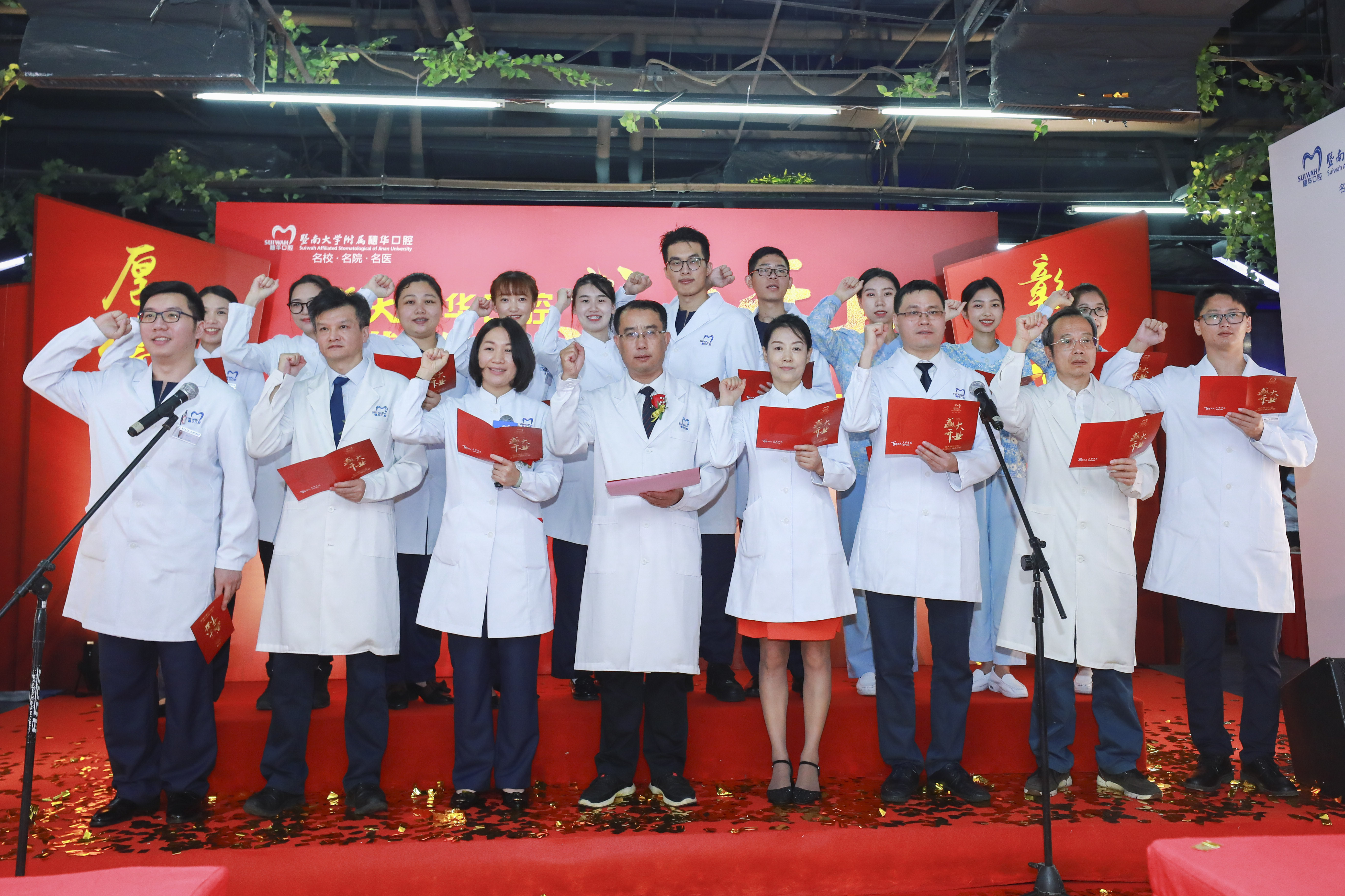 医疗团队的技术水平和医德医风决定了一家医院的未来。开业仪式上,黄埔院区的数十名医护团队进行了庄严宣誓:自觉维护口腔医学的尊严和神圣,敬佑生命,平等仁爱,患者至上,真诚守信。铿锵有力的誓言代表了全体医护人员不忘初心,竭尽全力把口腔健康带给广大市民的决心和信心。