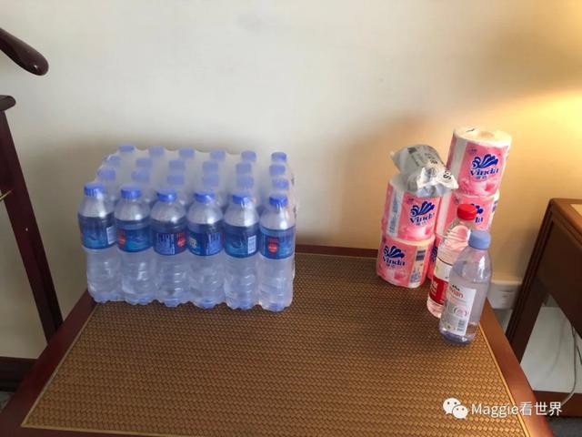 由於是封閉隔離,所以住宿隔離期間不會有清潔人員打掃衛生,但是酒店非常細心地配備了足夠的礦泉水、衛生紙、洗漱用品以及垃圾袋一卷。