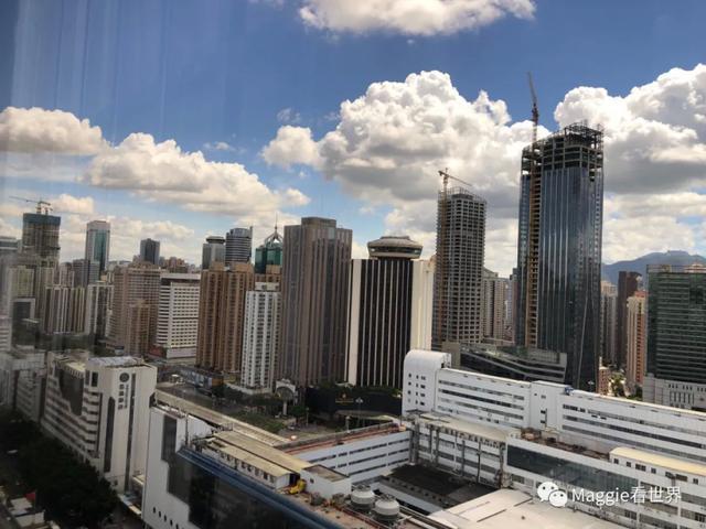 我們在富臨健康驛站的套房有 50 多個平方米,一家三口住得相當寬敞。因為在 23 樓,視野很好。窗外正對着深圳火車站和羅湖口岸,遠處是深圳河以及香港新界的青山,在藍天白雲的映襯下,風景獨好,心情都跟着風揚起來了。