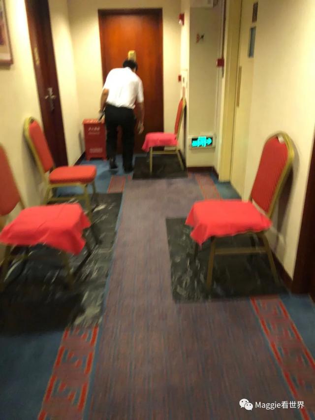 昨天入住的時候看到走廊擺了那麼多椅子,還覺得疑惑。昨晚才知道是為了給隔離者量血壓或者其他檢查用的,這樣醫生就不需要進房間,避免交叉感染。