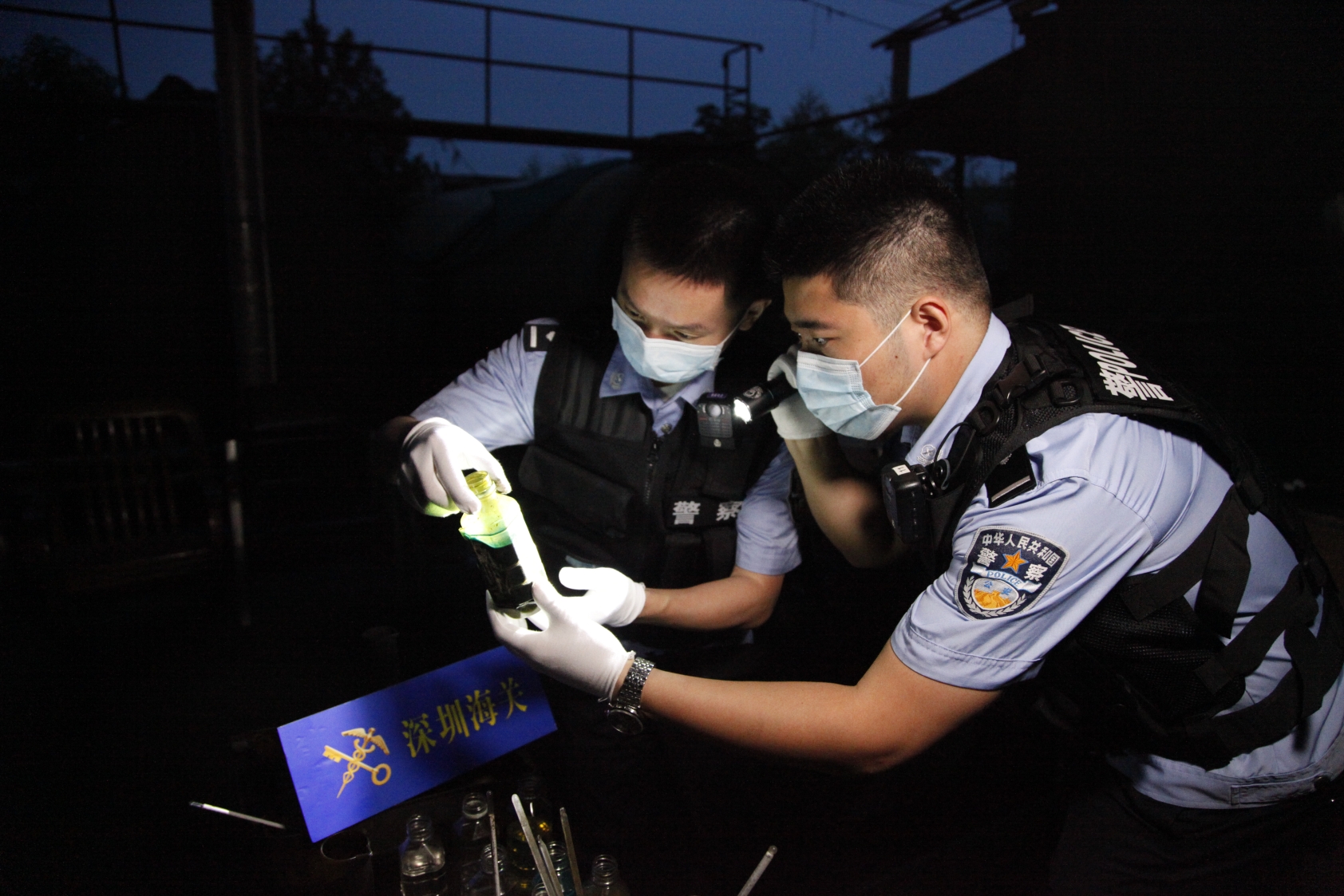 6月10日凌晨,深圳海关开展“蓝天2020”专项第一轮集中打击行动,图为缉私人员在东莞市某油库现场开展查缉
