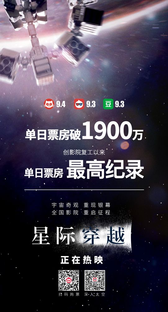 《星际穿越》创影院复工后单日票房最高纪录