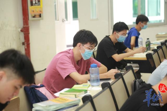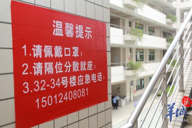 为方便同学们自习备考,三个校区公共教学楼所有课室开放, 并安排专人定时进行防疫消杀。记者留意到,在走廊醒目位置和教室门口均张贴了标识,提示佩戴口罩、间隔就坐,并提供了应急联系电话。