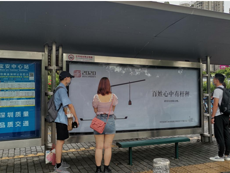 以“廉洁”为主题的廉政宣传公交站台正式上线。